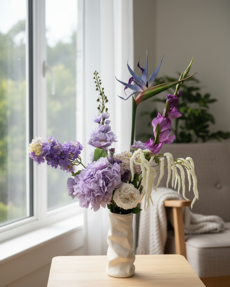 Waar echte bloemen vervagen, blijven Fleuritense bloemen stralen. Elk boeket is met zorg handgemaakt om de elegantie van verse bloemen te behouden, zonder water of onderhoud. Een tijdloos symbool van rust, stijl en verfijning dat elke ruimte tot leven brengt.