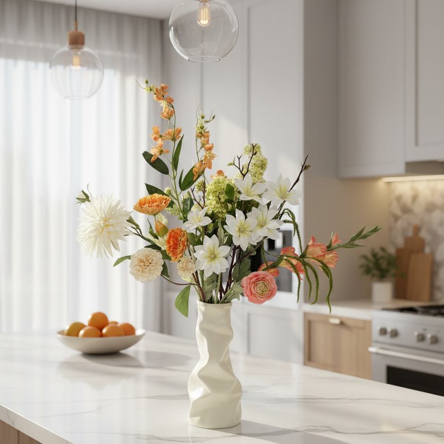 Onze zijden bloemen brengen meer dan schoonheid. Ze brengen rust, warmte en harmonie in elke ruimte. Geen verwelking, geen onderhoud, alleen blijvende elegantie die elke dag opnieuw een gevoel van luxe oproept. Kies voor tijdloze bloemen die niet alleen gezien worden, maar gevoeld.