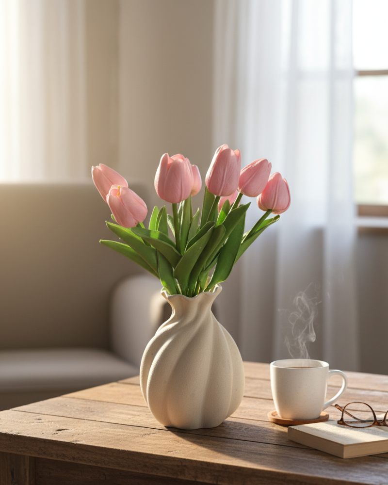 Je ervaart elke dag dezelfde frisheid en elegantie zonder onderhoud, zonder verspilling en zonder teleurstelling. Dat is de echte transformatie. Niet nog een object op tafel, maar een gevoel dat blijft. Rust wanneer je binnenkomt. Trots wanneer je gasten ontvangt. Een huis dat altijd af voelt.