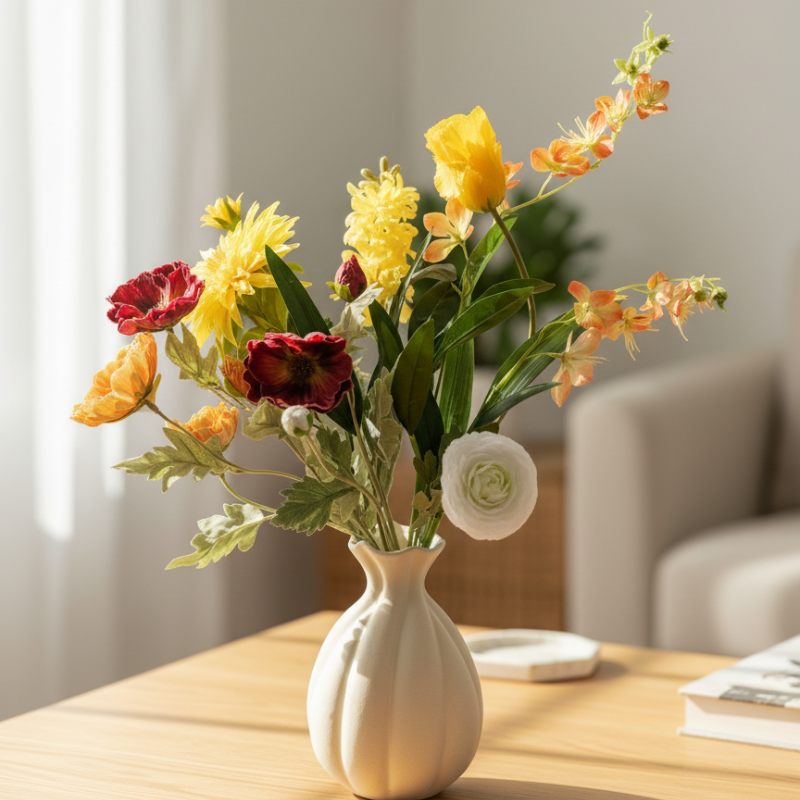 Nos fleurs en soie apportent la beauté de la nature à la maison, sans les soucis d'entretien. Là où les fleurs fraîches fanent rapidement, nos bouquets brillent saison après saison.