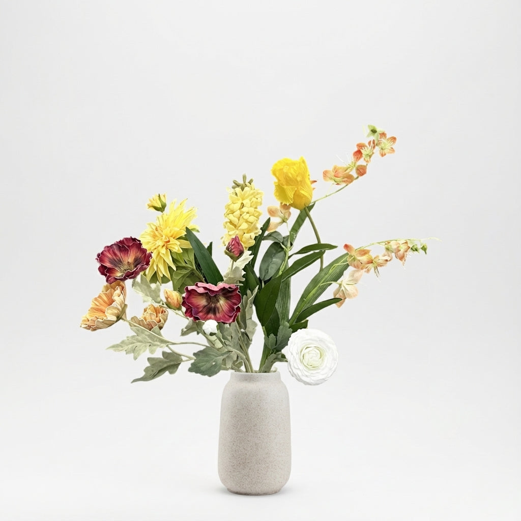 Ce bouquet apporte chaleur, calme et caractère à la maison et s'adapte aussi bien aux intérieurs modernes que classiques. Un élément décoratif durable qui ne nécessite aucun entretien, tout en dégageant le luxe et la douceur des vraies fleurs.