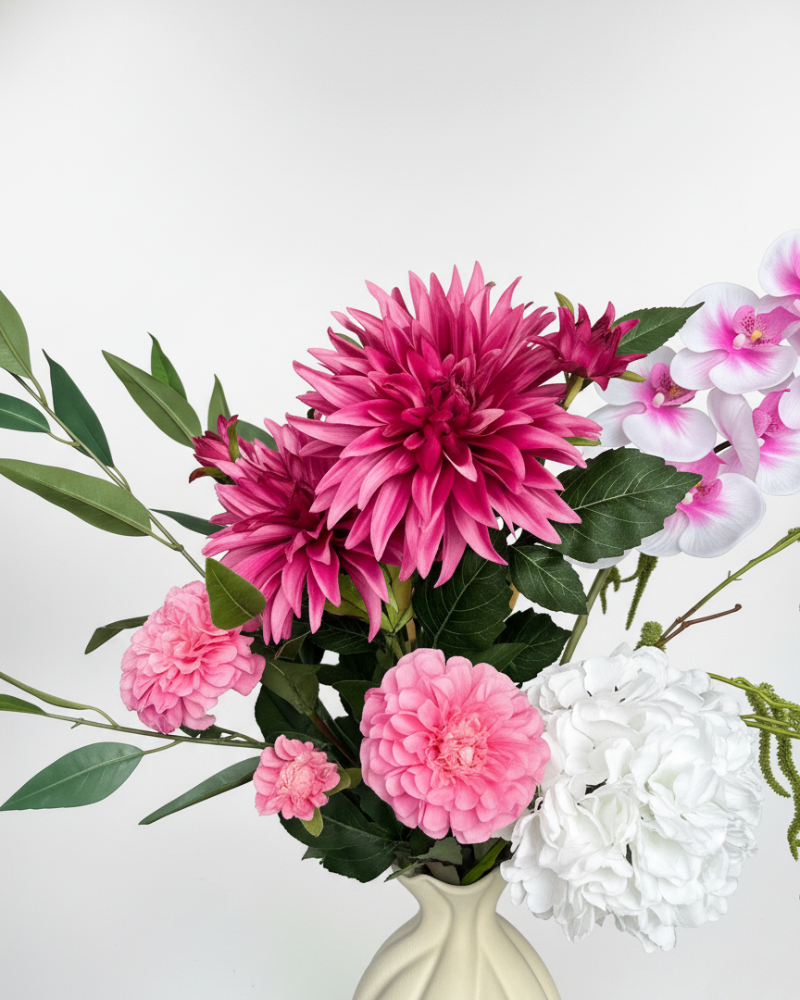 Nos fleurs en soie apportent la beauté de la nature à la maison, sans les soucis d'entretien. Là où les fleurs fraîches fanent rapidement, nos bouquets brillent saison après saison.