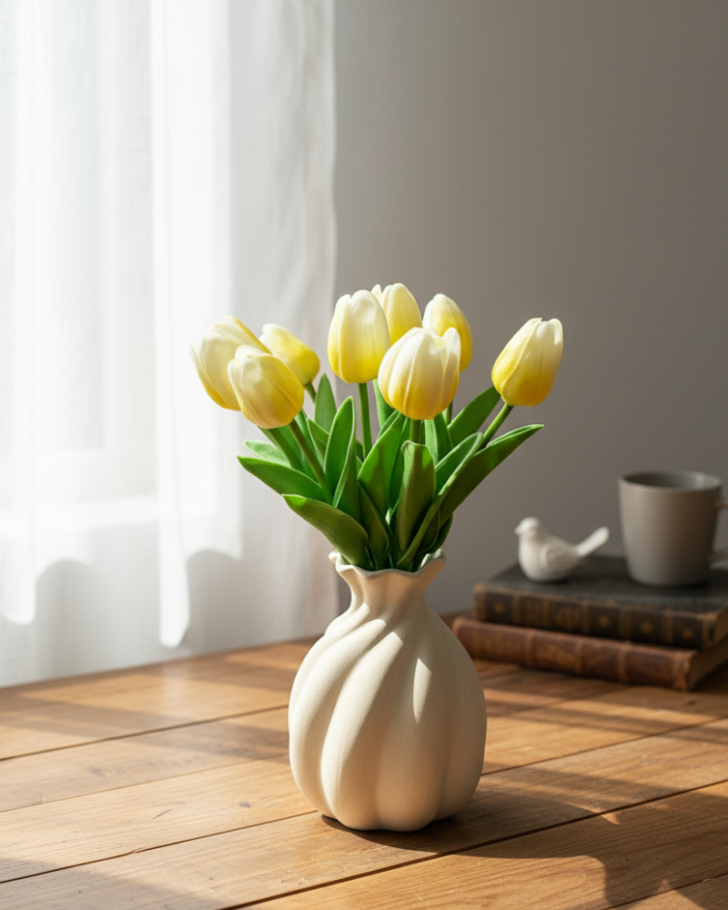 Elke bloem wordt met de hand gemaakt van hoogwaardige materialen en voelt levensecht aan, met subtiele kleurschakeringen en natuurlijke vormen die niet van echt te onderscheiden zijn. Zo geniet je van de uitstraling van verse bloemen, maar dan blijvend.