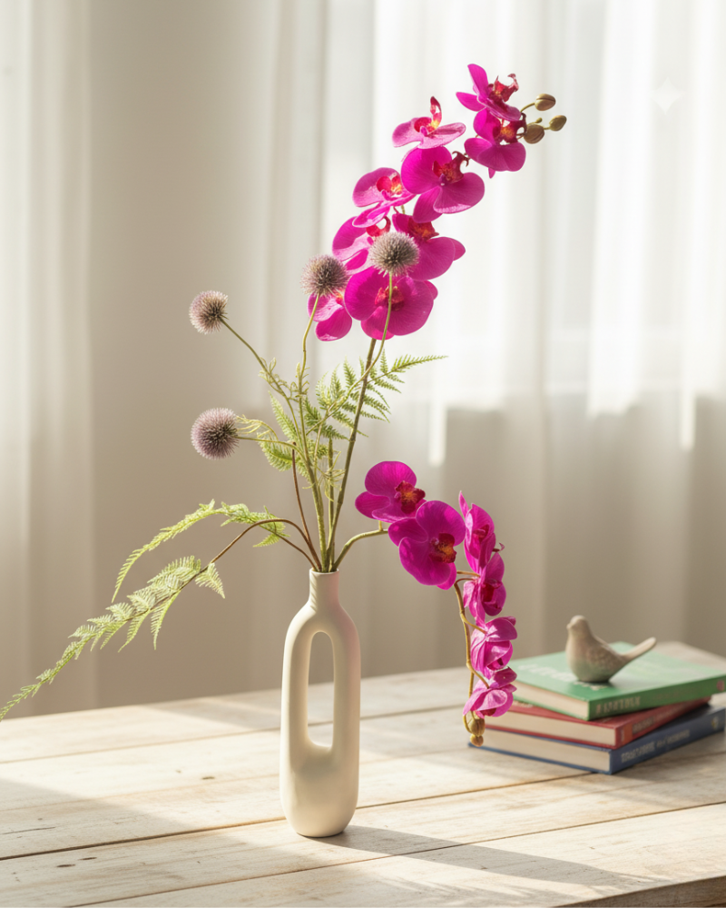 Elke bloem wordt met de hand gemaakt van hoogwaardige materialen en voelt levensecht aan, met subtiele kleurschakeringen en natuurlijke vormen die niet van echt te onderscheiden zijn. Zo geniet je van de uitstraling van verse bloemen, maar dan blijvend.