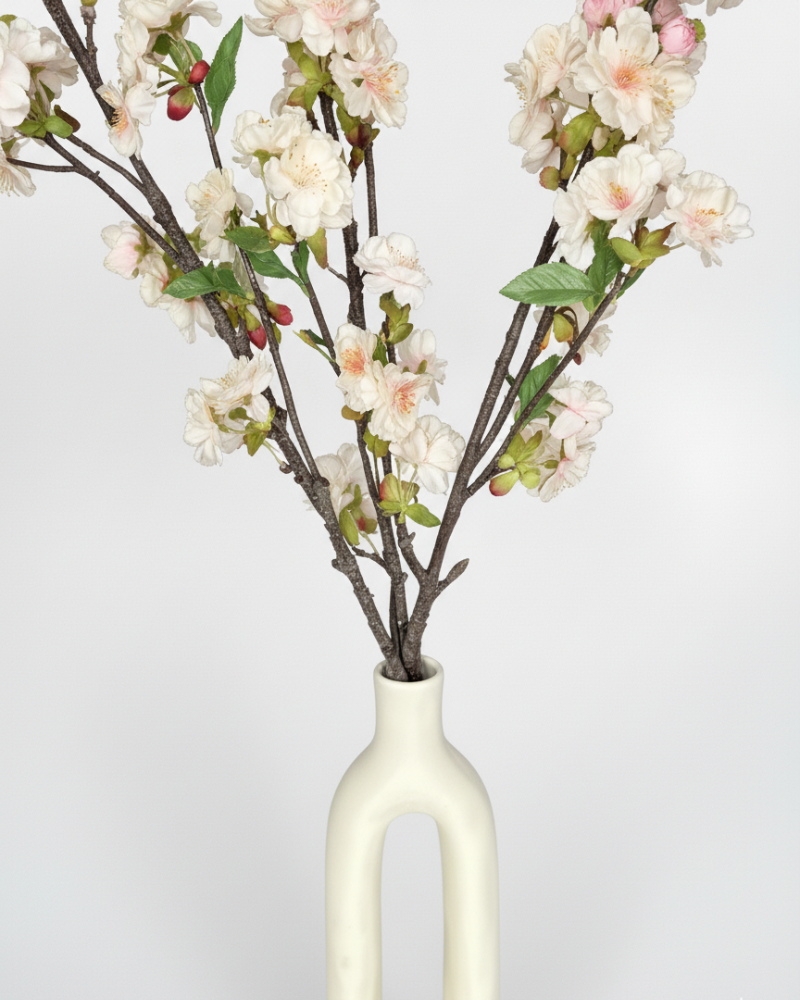 Breng blijvende elegantie in huis met dit handgestylede zijden boeket. De zorgvuldig geselecteerde stelen zijn levensecht tot in elk detail en behouden hun natuurlijke vorm en verfijnde uitstraling, seizoen na seizoen. De combinatie van bloemen en takken zorgt voor een rijke, maar luchtige compositie die moeiteloos sfeer toevoegt aan iedere ruimte.