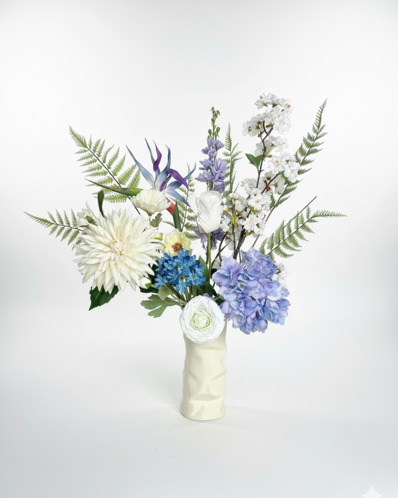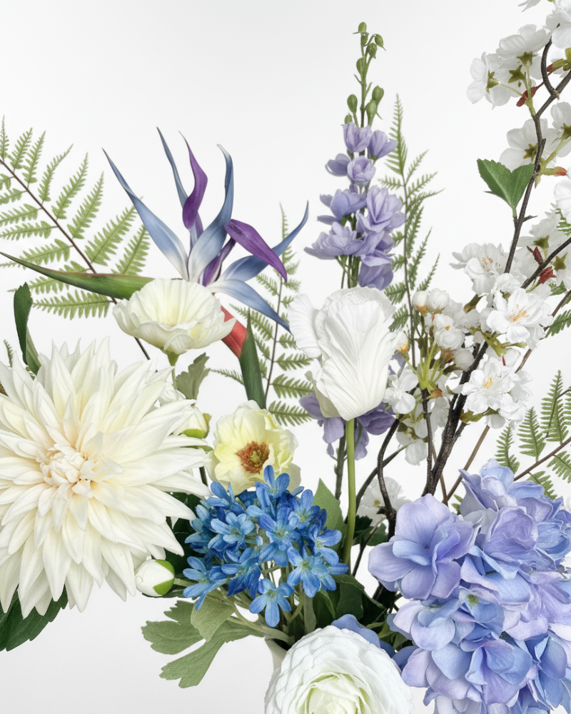 Onze zijden bloemen brengen de schoonheid van de natuur in huis, zonder de zorgen van onderhoud. Waar verse bloemen snel verwelken, blijven onze boeketten seizoen na seizoen stralen.